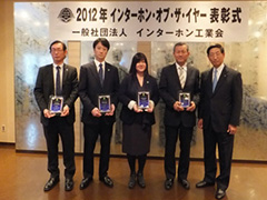 第13回インターホン・オブ・ザ・イヤー 審査結果と受賞 表彰日:2012年11月15日 一次審査:2012年09月07日 一般社団法人インターホン工業会事務所 二次審査:2012年10月08日 機械工具会館 最優秀賞 単品部門 ワイヤレスモニター付きテレビドアホン VL-SWD700KL パナソニック システムネットワークス(株) システム部門 マンションHAシステム Dシリーズ Windea パナソニック(株) エコソリューションズ社 部門賞 社会貢献賞(システム部門) 病棟業務支援プラットフォーム NICSS-R8 (株)ケアコム 特別賞 インターホンその他部門 緊急通報装置 FE-M アイホン(株) 11月15日 表彰式にて