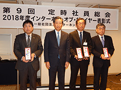 第19回インターホン・オブ・ザ・イヤー 審査結果と受賞 表彰日:2018年11月27日 一次審査:2018年09月07日 一般社団法人インターホン工業会事務所 二次審査:2018年10月12日 TKP品川港南口会議室 最優秀賞 単品部門 ワイヤレステレビドアホン VL-SGZ30シリーズ パナソニック(株)アプライアンス社 システム部門 VIXUS-1Pr (VIXUS HORIZO&らくタッチPlus) アイホン(株) 部門賞 開発貢献賞(システム部門) 集合住宅向けIPインターホン (株)ナカヨ 特別賞 インターホンその他部門 見守りカメラ アイホン(株) 11月27日 表彰式にて
