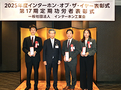 第25回インターホン・オブ・ザ・イヤー 審査結果と受賞 表彰日:2025年11月28日 一次審査:2025年09月05日 WEB会議 二次審査:2025年10月03日 TKP品川港南口会議室 最優秀賞 単品部門 VL―SE31 シリーズ パナソニック エンターテインメント&コミュニケーション(株) システム部門 集合住宅向けインターホン PATMOα Pabbit対応システム アイホン(株) 特別賞 インターホンその他部門 地域情報コミュニケーションサービス 「まちベル」対応Clouge パナソニック(株)エレクトリックワークス社 11月28日 表彰式にて